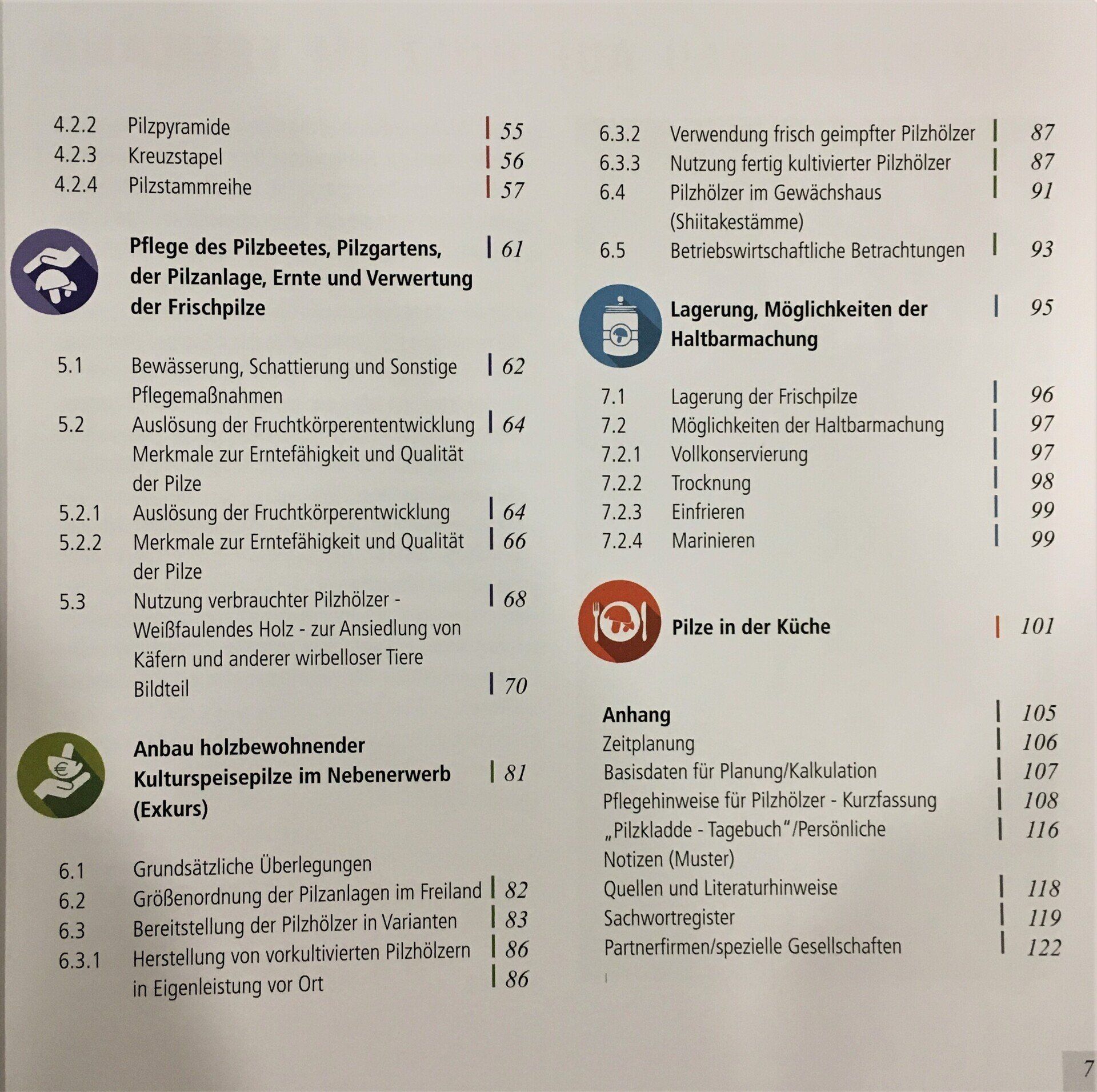 Hier finden sich fundierte Informationen zu den anbauwürdigsten Pilzarten und zum speziellen Pilzanbau im Haus, Hof und Garten wieder. Für Jedermann nachvollziehbar wird Schritt für Schritt die Herangehensweise in ihrer zeitlichen und technologischen Reihenfolge direkt und am konkreten Beispiel vom Aufbau der „Thüringer Freilandpilze GmbH“ dargestellt.